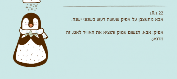 אפיק: אבא, תנשום עמוק ותוציא את האוויר לאט. זה מרגיע.