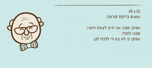 אפיק: כי אני פה. בגן יש הרבה ילדים שיכולים להגיד אותי ופה אנחנו רק שלושה ילדים!