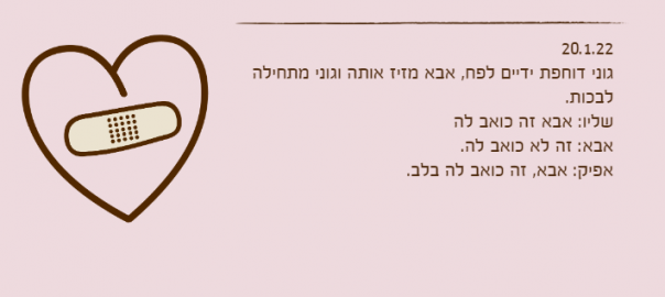 אבא: נכון, היא אמרה שאתה מיד אומר לגננת או לסייעת ואף פעם לא מרביץ או מקלל. אז למה אתה משתמש באלימות?