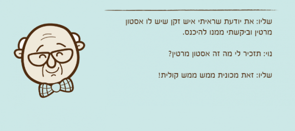 שליו: את יודעת שראיתי איש זקן שיש לו אסטון מרטין וביקשתי ממנו להיכנס.