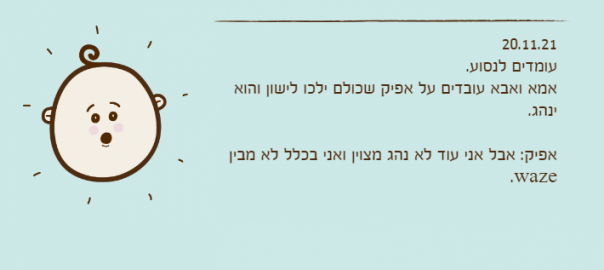 אמא ואבא עובדים על אפיק שכולם ילכו לישון והוא ינהג.