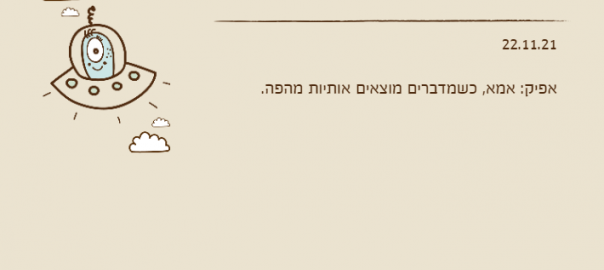 אפיק: אמא, כשמדברים מוצאים אותיות מהפה.