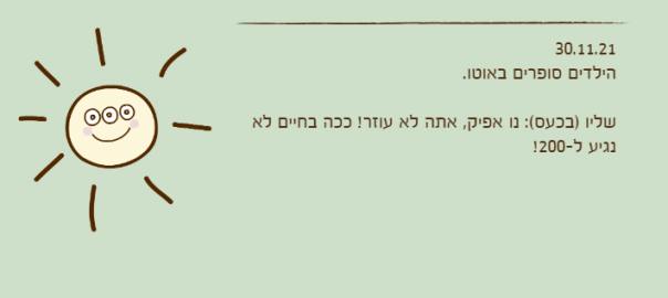שליו )בכעס(: נו אפיק, אתה לא עוזר! ככה בחיים לא נגיע ל-200!