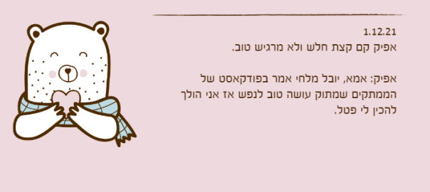 אפיק: אמא, יובל מלחי אמר בפודקאסט של הממתקים שמתוק עושה טוב לנפש אז אני הולך להכין לי פטל.