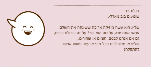אמא: אתה יודע על מה הוא שר? על זה שכולנו שווים, גם אם אנחנו לבנים, חומים או שחורים.