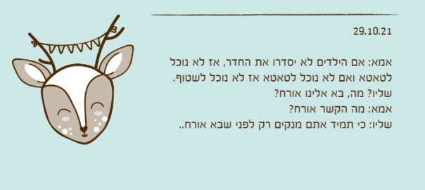 אמא: אם הילדים לא יסדרו את החדר, אז לא נוכל לטאטא ואם לא נוכל לטאטא אז לא נוכל לשטוף.