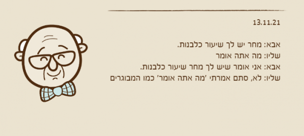 אבא: אני אומר שיש לך מחר שיעור כלבנות.