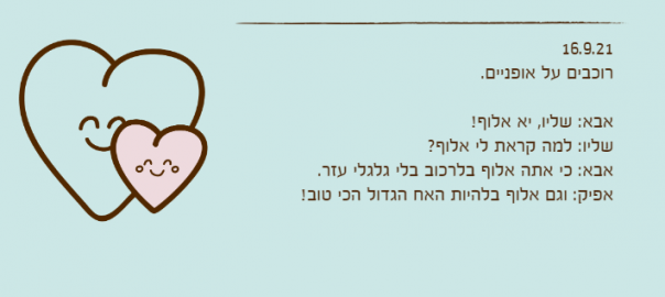 אבא: כי אתה אלוף בלרכוב בלי גלגלי עזר.