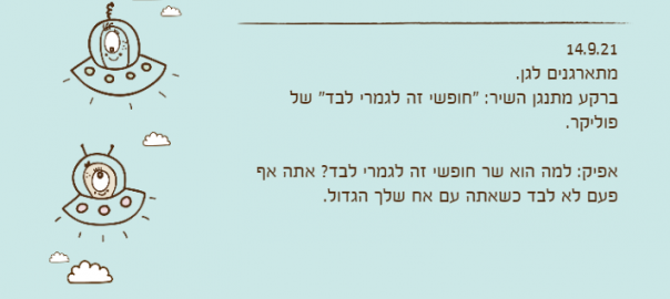 ברקע מתנגן השיר: "חופשי זה לגמרי לבד" של פוליקר.
