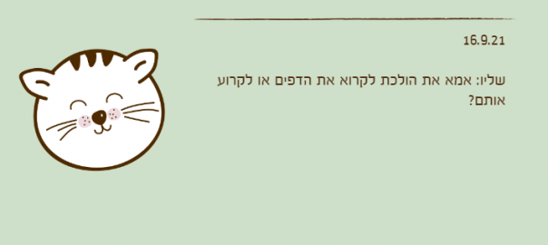 שליו: אמא את הולכת לקרוא את הדפים או לקרוע אותם?