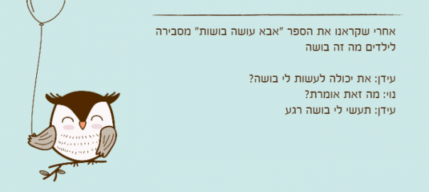 אחרי שקראנו את הספר "אבא עושה בושות" מסבירה לילדים מה זה בושה
