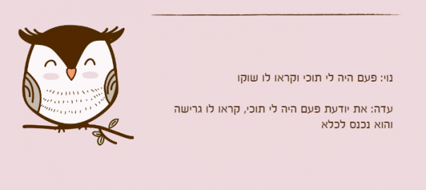 עדה: את יודעת פעם היה לי תוכי, קראו לו גרישה והוא נכנס לכלא