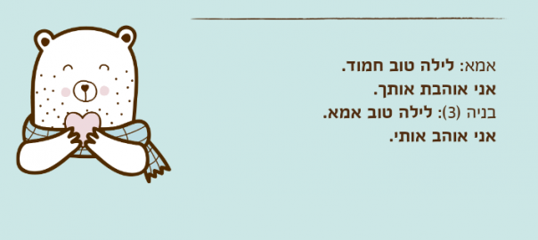 אמא: לילה טוב חמוד. אני אוהבת אותך.