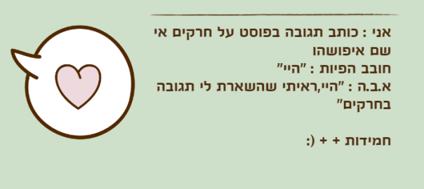 א.ב.ה : "היי,ראיתי שהשארת לי תגובה בחרקים"