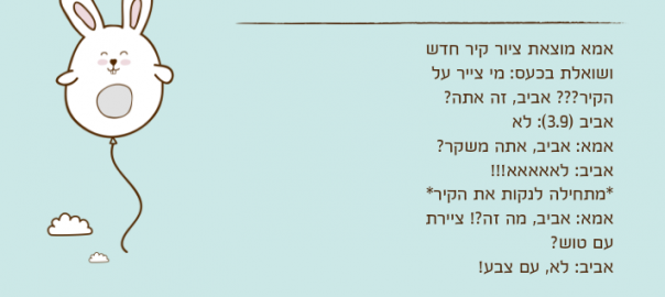 אמא מוצאת ציור קיר חדש ושואלת בכעס: מי צייר על הקיר??? אביב, זה אתה?