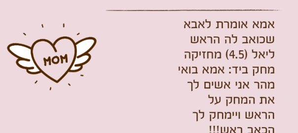 ליאל )4.5( מחזיקה מחק ביד: אמא בואי מהר אני אשים לך את המחק על הראש ויימחק לך הכאב ראש!!!